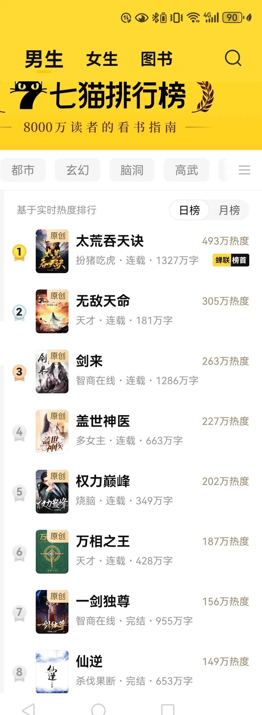 起点小说,番茄小说,七猫小说之间排行榜的对比