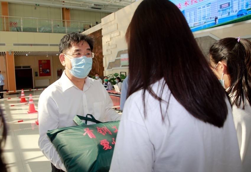 走进首钢工学院实习实训中心大厅的“绿色通道”现场,陈希原一行与迎新工作人员交流,实地考察新生怎样通过“绿色通道”办理缓交学费手续,在这个过程中得到了哪些帮扶,询问新生对“绿色通道”有哪些建议。记者在现场看到,学校在新生报到现场显著位置张贴“绿色通道”标识,现场发放“绿色通道”宣传资料,在新生报到现场设立咨询台,当面解答新生及家长提出的问题,现场咨询指导“绿色通道”手续办理。此外,学校为家庭经济困难学生准备爱心礼包,内含床单、被罩、枕巾、枕套、床垫等满足学生基本生活需求的实用物资。