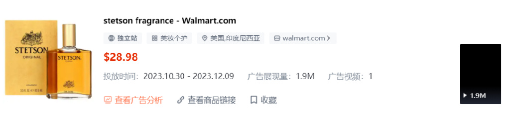 3.WALMART.COM:以一款香水产品获得了1.9M的展示量,广告创意以追求自我、追求自然为主题,展现出个性,不受拘束的理念,很好地契合了该品类受众的喜好!