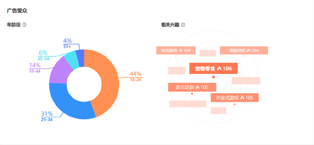 1.香水:该品类的广告受众年龄段与上周相比没有变化,均是44%为18-24岁、31%为25-34岁。但在感兴趣的话题上,“旅游其他”话题热度跌出前三,热点话题“沙盒式游戏”热度上涨。