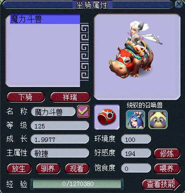 骑乘坐骑可以增加大量属性,小伙伴的坐骑成长至少培养到2.0左右哦,同时要保证好感度在90以上,否则加成属性会衰减