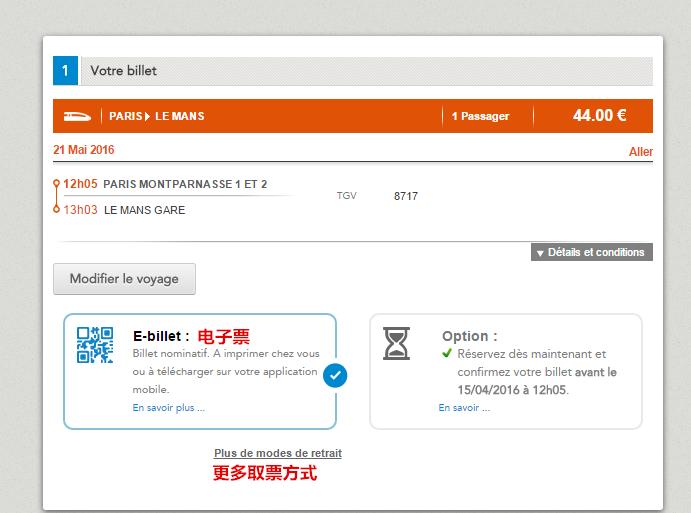 e)如果有换乘,在每个车的旁边都会注明,我选的这趟车没有。换成一般是从小城市出发去另一比较远的大区的城市,我觉得大家一般都是在巴黎坐车,应该不会用到换乘,这里只是随口提一句希望大家稍微注意一下。