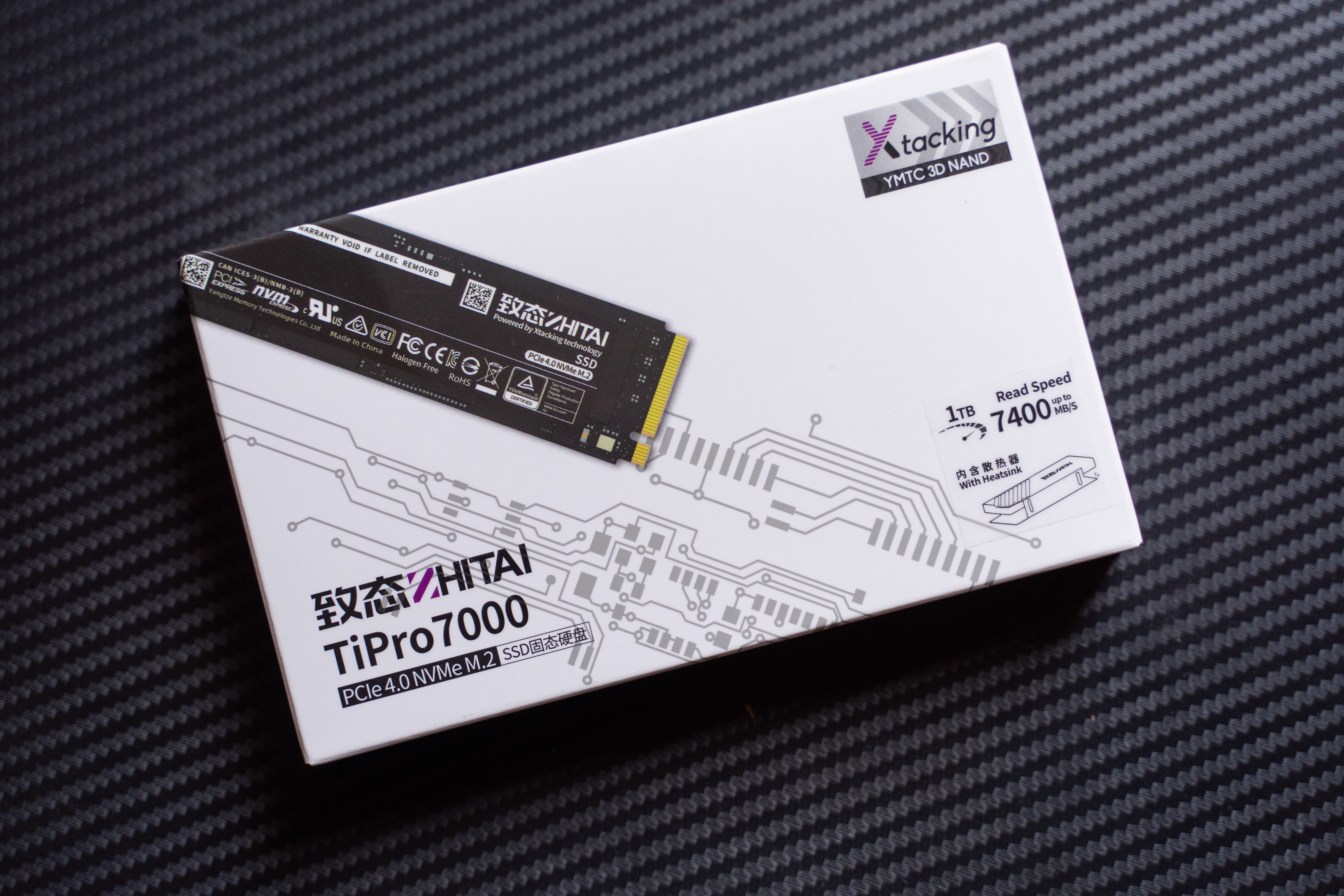 趁着这次双十一固态硬盘类产品的史低价,笔者这次入手了不少固态硬盘,这款号称“国产之光”的致钛/致态 TiPro7000 1TB版本是我这次双十一入手的所有产品中最高端的一款(上次测了个最差的光威悍将2T),我计划把它当成系统盘使用,在使用前正好也体验评测一下(说拆解也不准确,毕竟M.2其实没啥好拆的)。