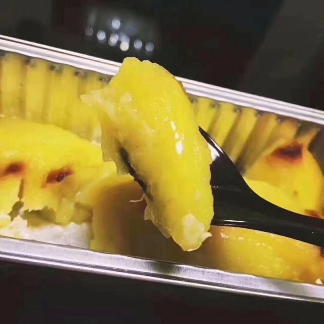 烤制后的榴莲,带着诱人黄的果肉出现在眼前,刚烤好后还带着余温,榴莲馥郁的香气随之而来。榴莲果肉拥有凝脂似的质感,嫩滑细致,无粗纤维,气味浓郁,拥有入口即化的冰激凌口感,甘饴如蜜,无限完美!