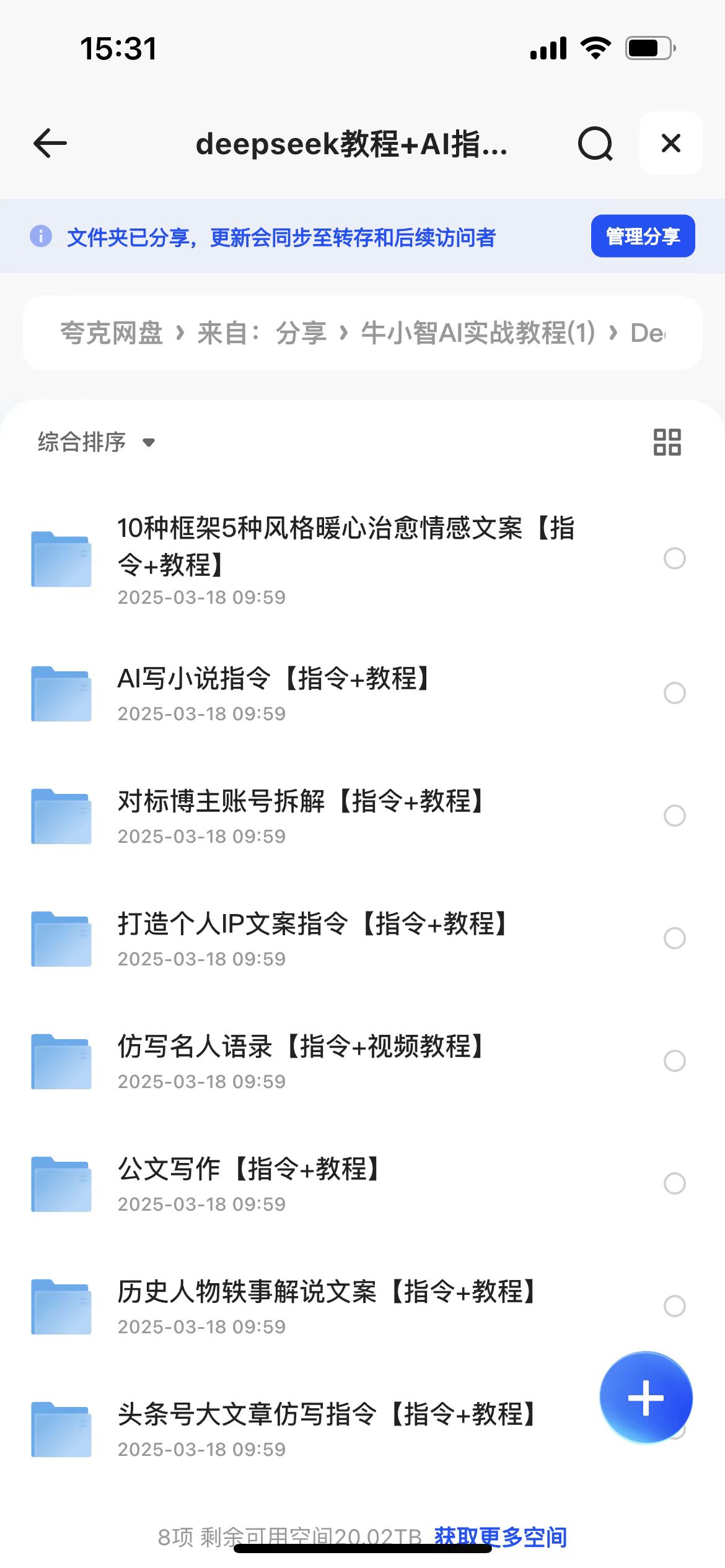 实践建议:通过以上全流程操作,即使零基础用户也能在 3 小时学习后独立完成商业级视频制作。DeepSeek + 即梦的组合不仅颠覆了传统视频创作模式,更开启了全民 AI 视频创作的新时代。不管怎么说提示词是用好AI的关键,这是我给大家准备的10000个提示词(夸克网盘分享),希望可以帮到大家。