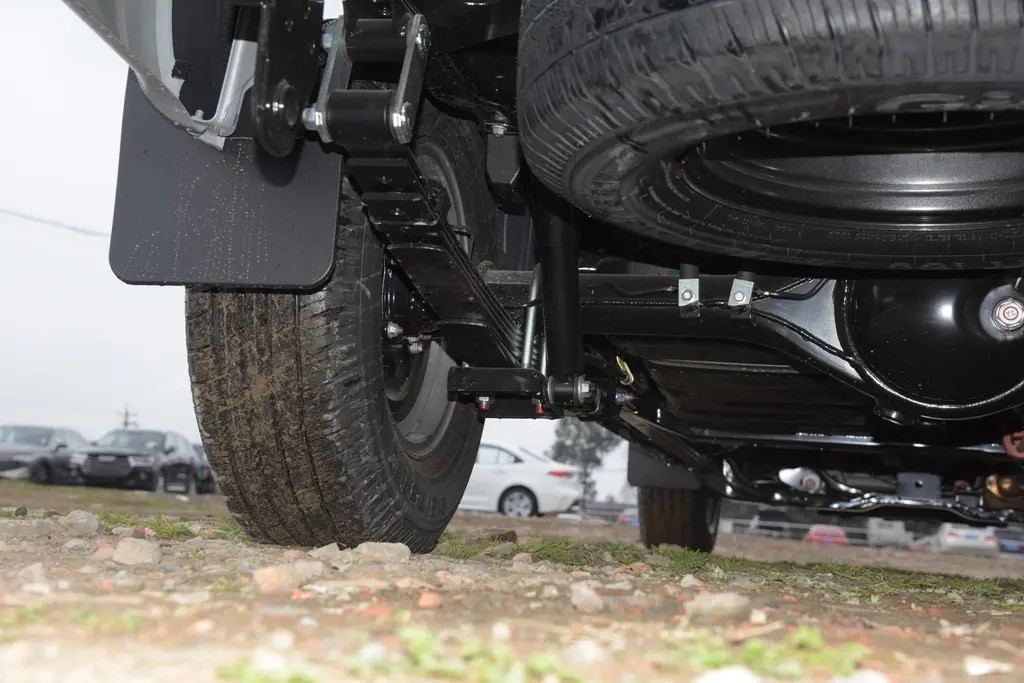 悬架部分,这款长城风骏5采用的是前双横臂式独立悬架和后整体桥式非独立悬架,车体结构为非承载式。对于这一悬架布局,可以说基本上和乘坐舒适无缘,不过胜在能适合更恶劣的用车环境,且后期维修成本低廉。