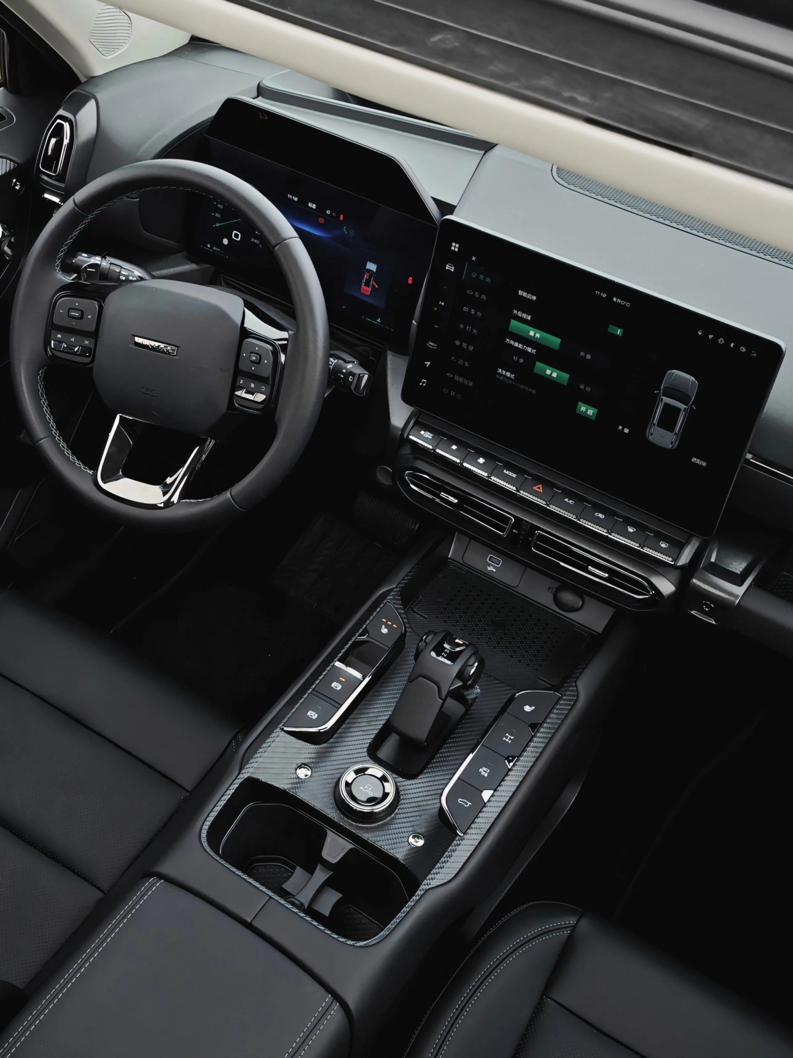 档把和长城旗下许多车类似,造型和使用手感都不错。档把两侧是座椅加热、差速锁、电子手刹、自动驻车、全景影像和电动尾门,按键依旧很大,非常方便。