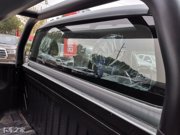 后窗玻璃少了后栏杆之后,的确提高了后方视野上的开扬感,但是从安全性上考虑,商用炮的货箱利用率更高,如果没有固定好,在车辆行驶过程中很有可能会与后窗玻璃发生接触,如果没有贴玻璃膜,将很有可能威胁后排乘客的安全。这点希望厂家后期能够改进。