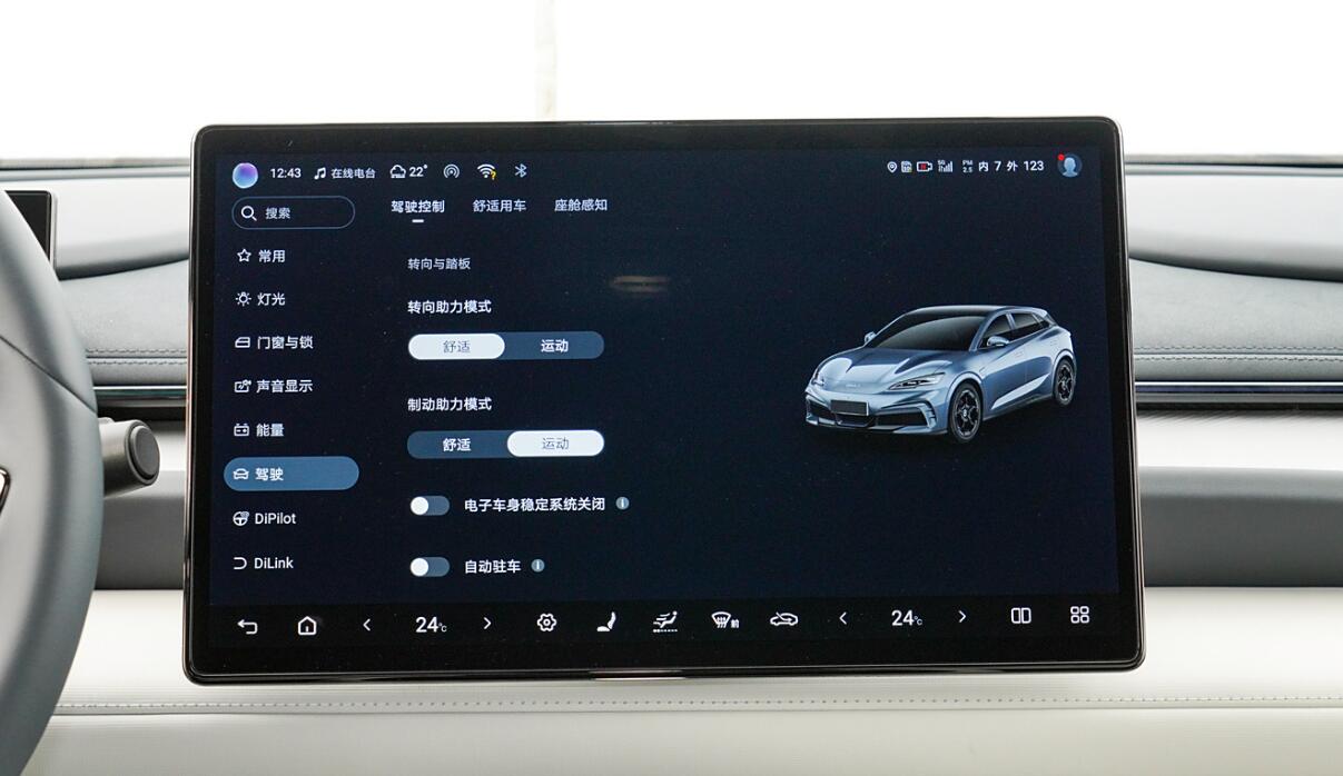 从内饰上看,该车采用了桶形座椅,中控台下方设计了手机无线充电区域和电子挡把。并配备了15.6英寸中控屏、10.25英寸仪表盘以及12英寸抬头显示,搭载了DiLink 100智能系统,支持全场景智能语音控制,以及地图壁纸双桌面和3D控车等功能。此外,还配备了DiPilot智能驾驶辅助系统,可实现L2级智能辅助驾驶,提供了车道领航、自动泊车等功能。