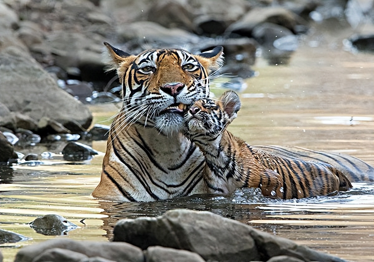 在南印度的孟加拉虎保护区,每100平方公里生活12只老虎。不过这里的内卷也更严重,孟加拉虎的性情也更加凶悍。