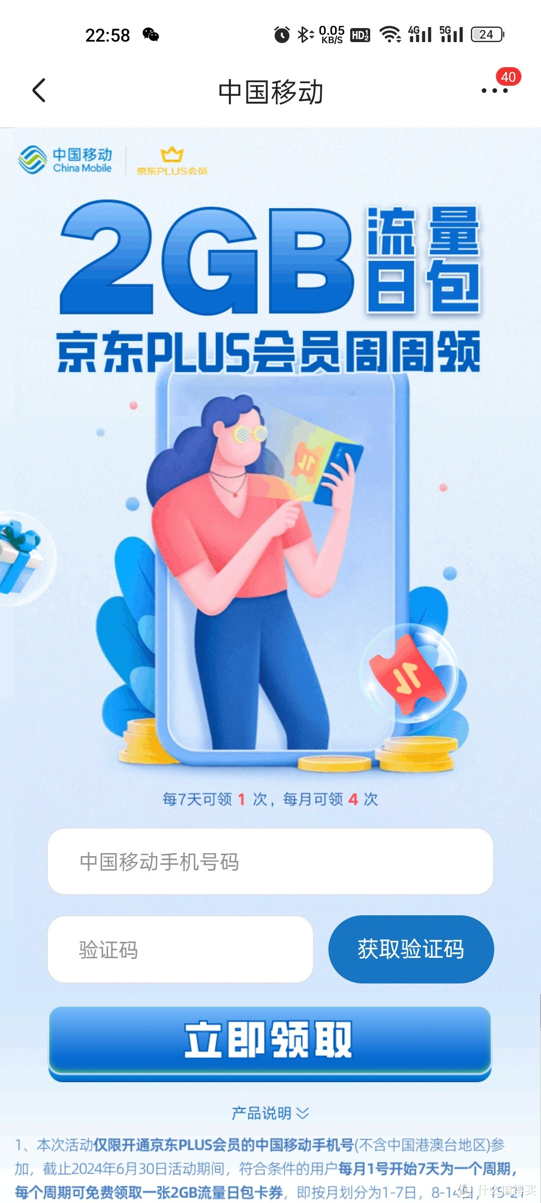 当然了,领取流量还是有一定前提的就是开通京东plus会员的这个手机号一定要是中国移动的,因为这是中国移动和京东所搞的活动。