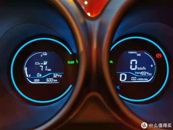 仪表盘,600km时照的。这个仪表盘很简单,没多少可看的。能看到电压、电流、正反馈(用电还是充电)、里程、能量输出等级,没了