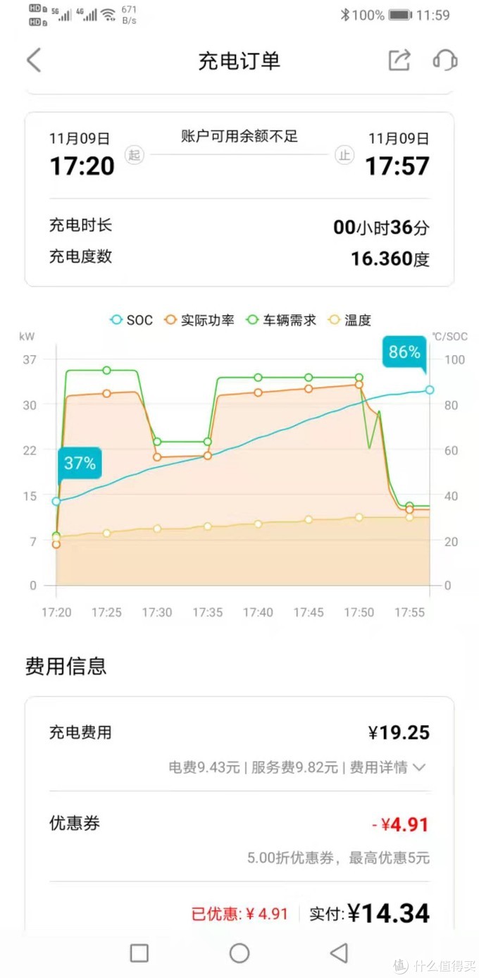 而我发出来的这个充电图,是我第一次充电,时间是11月9日下午,那个时候气温大约20度不到,很舒服的温度,所以充电也挺舒服。后面有很多乱七八糟的事,后面再讲。简单点总结就是:不是不能在外面的商业快充桩解决问题,但充电功率起伏不定时绝对让人想打人,而且绝对不是你想象的走过去就是30kw顶级功率伺候起,看到7-10kw时你绝对目眦尽裂。有时原计划冲20分钟走人,会发现40分钟都充不出个啥名堂来……总之,要想轻松惬意,老老实实装自己的充电桩吧。只有这样才能在家休闲时,它给你默默补电,不浪费你的时间精力。同时,费用也会更低。