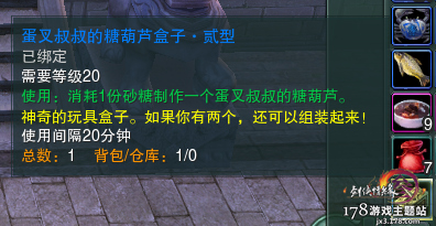 一型糖葫芦盒子使用CD是30分钟,二型则CD减为了20分钟,但我不知道三型是不是就变成10分钟了。