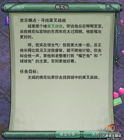 找到桃花仙之后跟他对话可以接取任务: