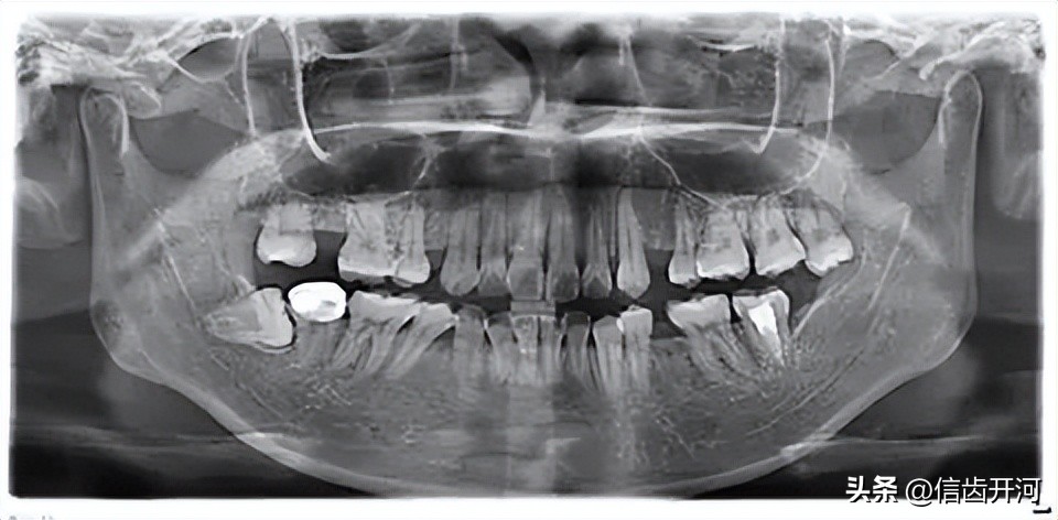 检查:下颌牙个别牙已缺失,其余轻度松动,牙根暴露。上颌牙已缺失,牙槽骨、牙槽脊愈合良好。