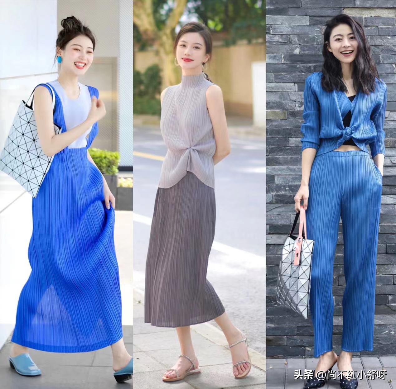 2)搭配半身裙:喜欢优雅风的姐妹,不妨搭配参考三宅一生这套半身裙,整个穿搭look就很淑女,时髦百搭,而且喜欢个性化的,还可以自己稍微用别针简单设计一下服饰,分分钟让你穿出自己独特的风格。