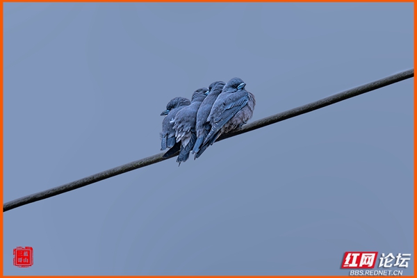 当日清晨,阳光温柔地洒在金黄的稻田上,摄影师在巡访时意外发现,一群灰燕鵙在农田上方的电线上紧密聚集,它们以“抱团取暖”的奇特方式相互依偎,这一幕温馨而又罕见,迅速成为镜头下的焦点。据现场观察,这一现象或与近期气温骤降有关,展现了自然界中生物独特的生存智慧。