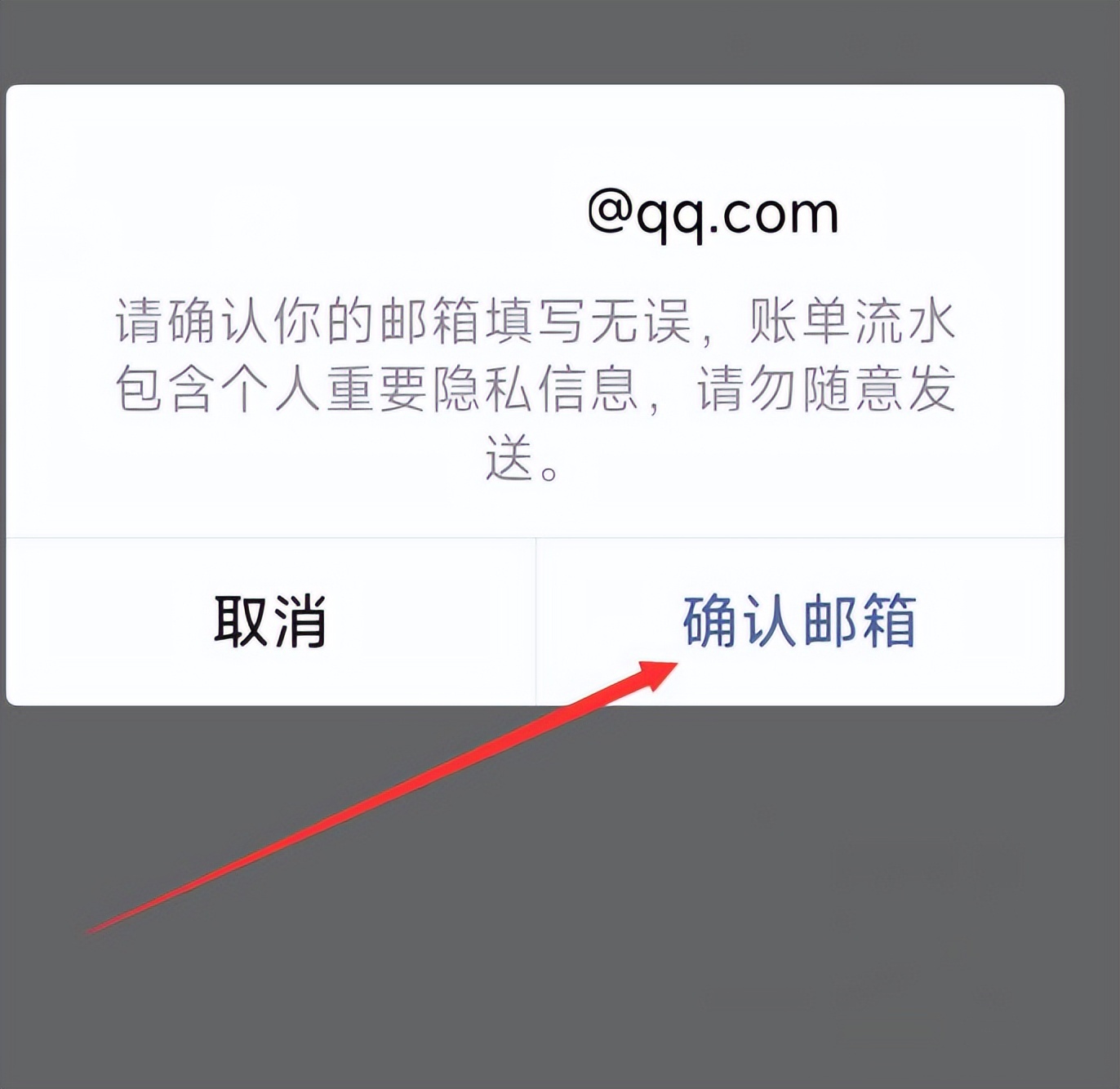 11.在新页面点击“确定”即可,会尽快发送流水账单到邮箱。
