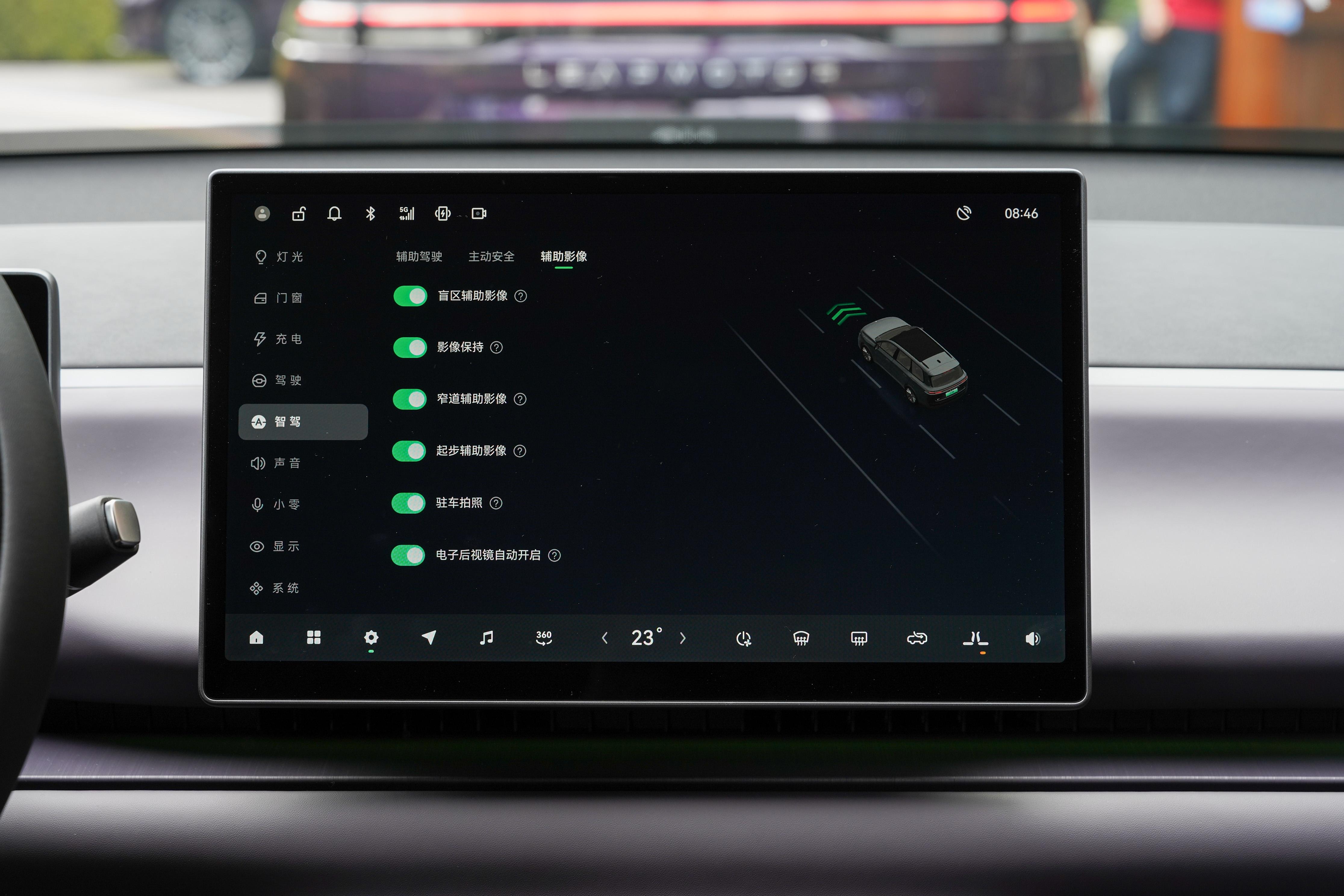家用SUV身上受欢迎的“大彩电”在零跑C16身上同样没有缺席,该车的前排搭载14.6英寸的OLED中控屏,其分辨率高达2.5k,用于AR实景导航和观影的效果不错。为了实现前后排舒适性平权,零跑C16还可选配15.6英寸的后排液晶屏,吸顶设计可以方便二、三排乘客共同观看,另外该车还自带12个扬声器和后排多媒体控制屏,音量、空调、车窗均可一指操控,实用性和科技感并存。