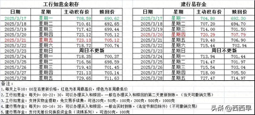又是超高,工行如意金积存&建行易存金,每日更新--2025.03.28