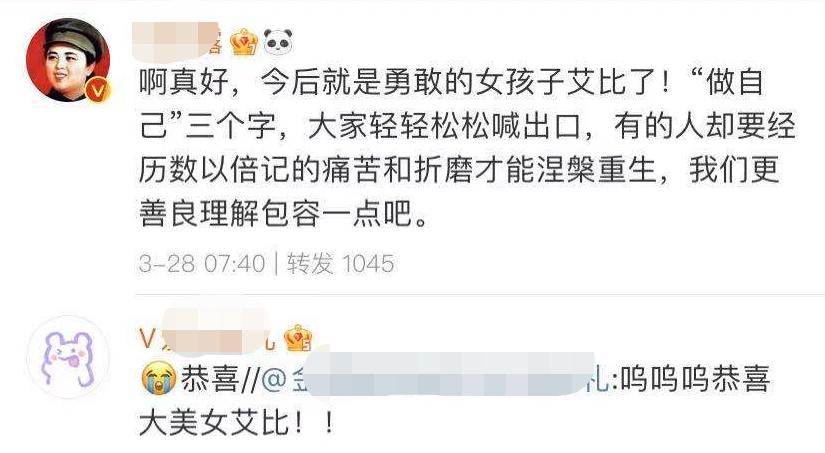 3月28日,网红艾比在社交平台向大家透露自己转性成功的消息,她表示:“是女孩啦,已经有底气去跟大家讲过去的事情了。”