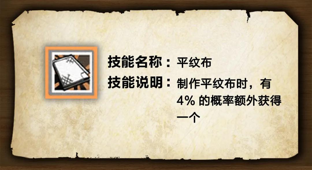 学习了该技能后,说不定护甲工们在制作平纹布时,还会出现“制一得二”的惊喜时刻哦。