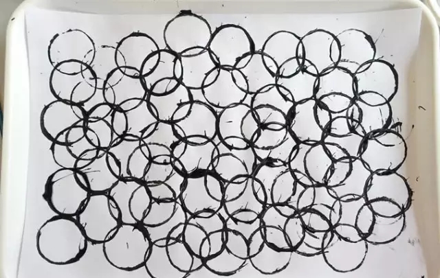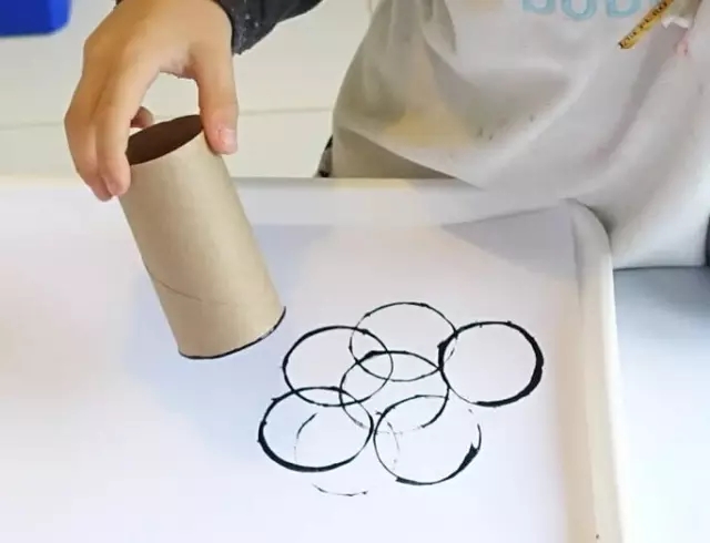 除了裁剪作画,还可以就地取材,直接利用卷筒的圆形描绘。