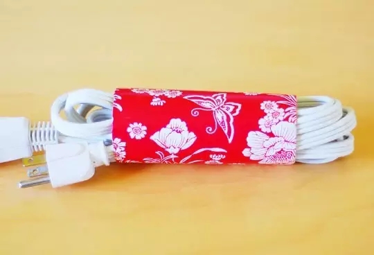 用彩纸将卷纸筒美化一下,然后将折好的电线放入其中,拿取方便,不会再搅成一起了。