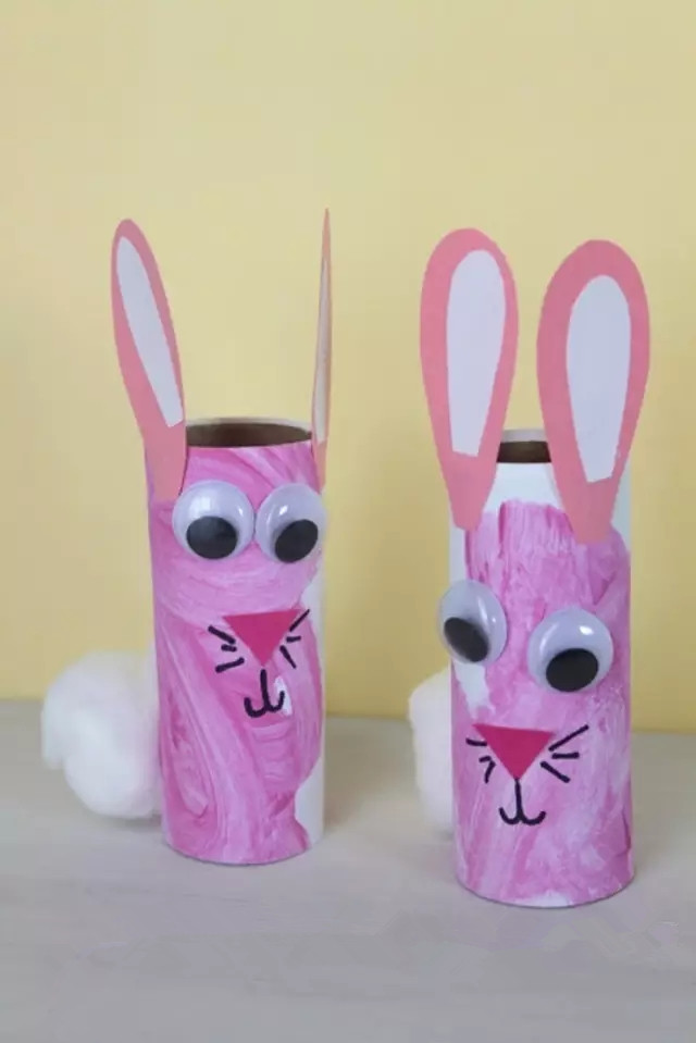 简单的装饰,一个卷纸筒就可以变身成粉粉的小兔子,小女生们一定会对其爱不释手的。