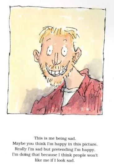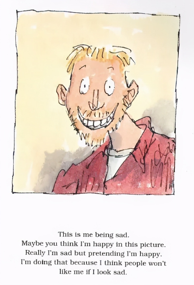 书的开头是一张迈克尔在笑的照片,但是文字解释道,他很伤心,只是在假装高兴。