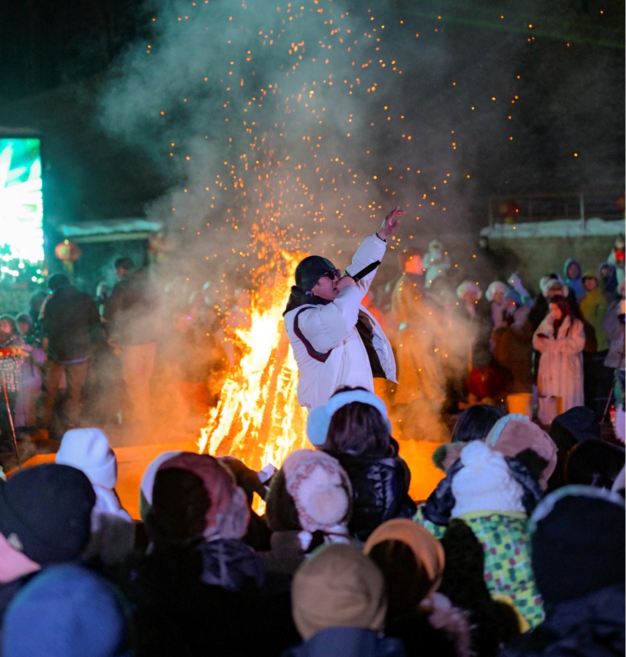 炽热篝火 为入夜的雪乡带来浓浓的烟火气(组图)