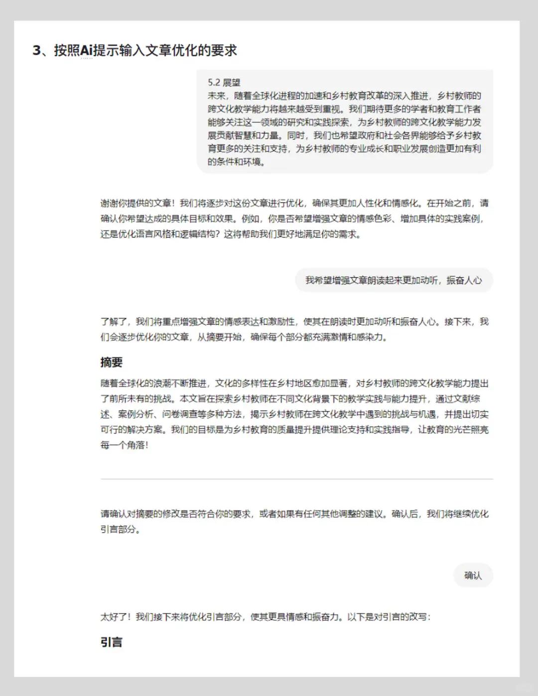 1️⃣ 将AI生成的文章复制到豆包工具中。