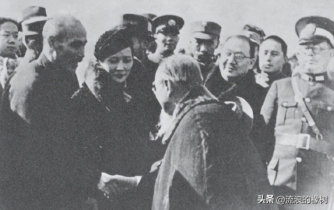 西安事变后,蒋介石和宋美龄返回南京,由国民政府主席林森率在京政要接机。