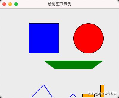 - 使用canvas.create_rectangle()、canvas.create_oval()和canvas.create_polygon()分别绘制了矩形、椭圆和多边形。设置了图形的坐标和填充颜色。
