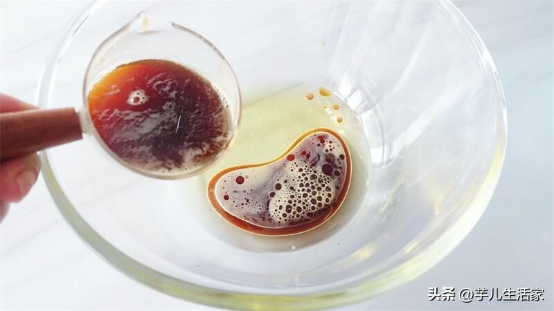 3.将咖啡液放入玉米油里。搅拌至完全乳化状态。