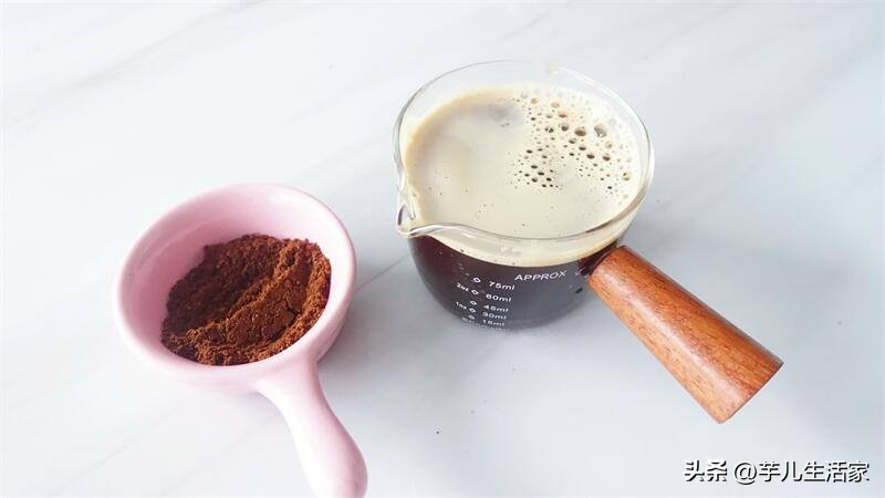 6.搅拌均匀,再加入2克咖啡粉。