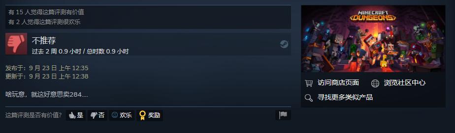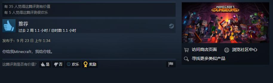 《我的世界:地下城》Steam版发售 获玩家特别好评