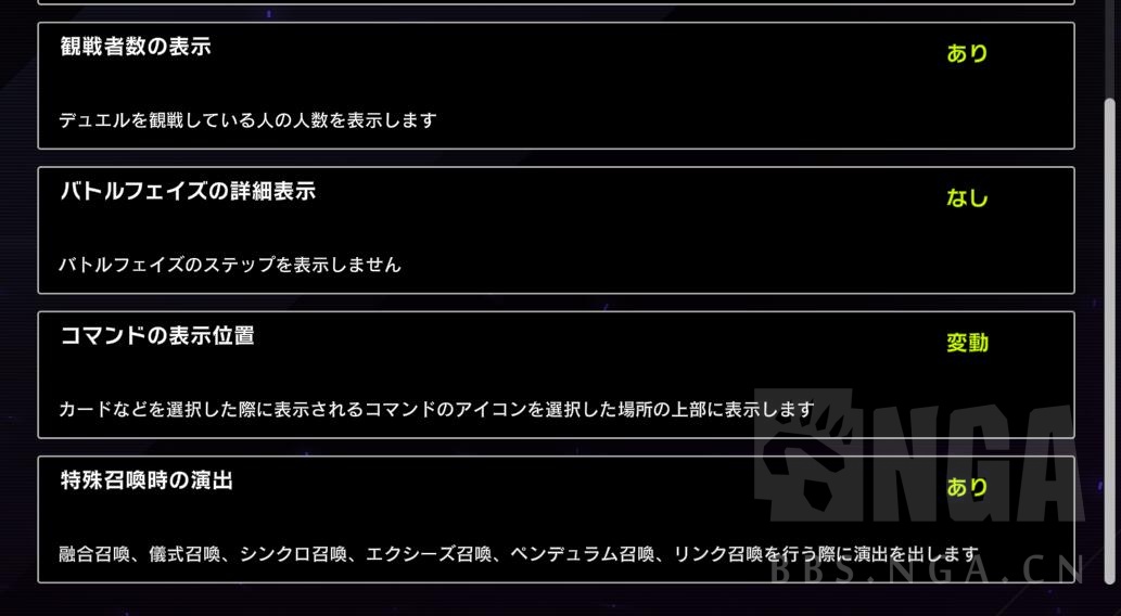 《游戏王:大师决斗》关于决斗中的各种设置的翻译及一点建议