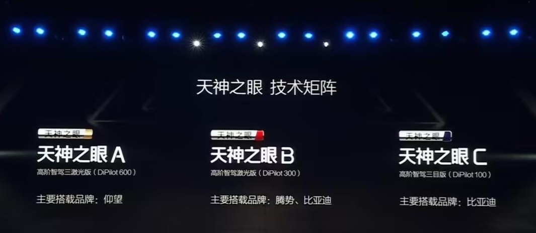 天神之眼A目前专用于仰望品牌,如仰望U8豪华SUV。天神之眼B适配腾势品牌和比亚迪的豪华车型,比如20万级的汉EV、唐DM-i等。天神之眼C覆盖比亚迪全系经济车型,包括7万级的海鸥智驾版(6.98万起)。10万级的秦PLUS DM-i、宋Pro DM-i等。