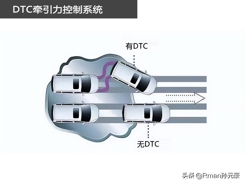 DTC是牵引力控制系统,它主要起到驱动防滑的作用,这个系统根据车轮的转数来进行判断车轮是否出现打滑的情况,当出现打滑的情况的时候,电脑会自动控制发动机对象用车轮的输出扭矩或抑制这个车轮的转数,这个系统也与ABS同样使用使用感测器及刹车调节器。