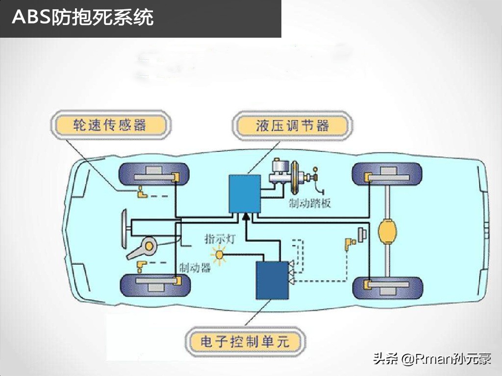 ABS防抱死系统,是在车辆紧急制动的时候,控制车辆让车轮不会彻底抱死,并且会在非常快的时间内进行频繁的点杀,从而避免在紧急刹车的时候车轮抱死导致车轮与地面之间打滑,频繁的点杀可以让轮胎与地面增加摩擦力,避免车辆失控,也可以减少刹车系统的消耗,在整个主动安全系统当中,ABS防抱死系统是整个辅助系统的基础。