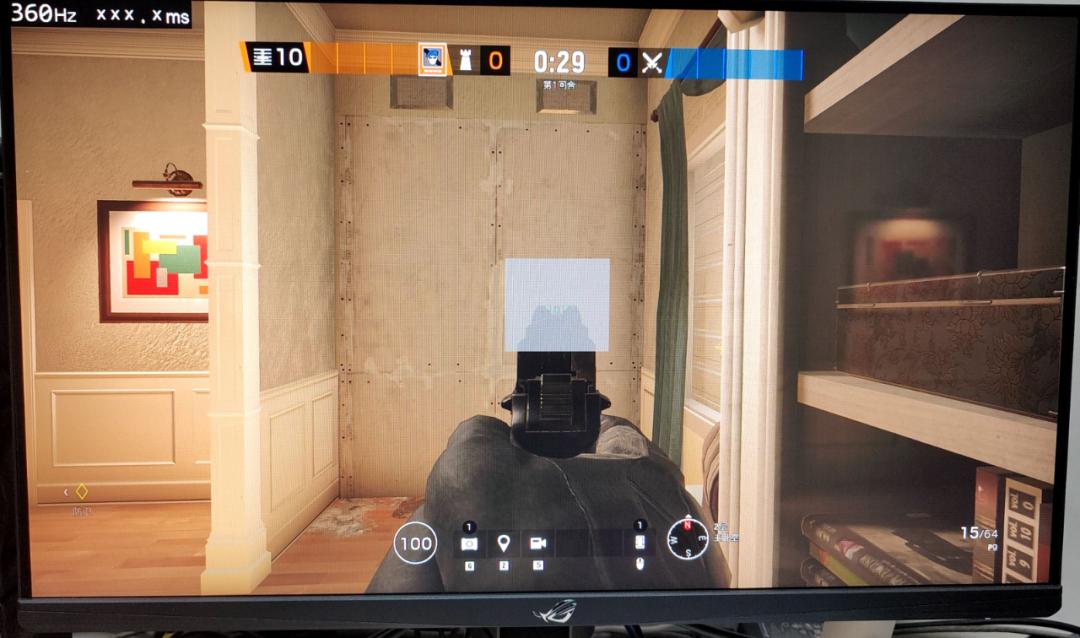 另外,我们挑选了才加入Reflex模式的《彩虹六号:围攻》用作测试对象,目前该游戏可以开启Reflex与加速模式,同时它还内置了延时闪光,能够进一步辅助我们得到更准确的延迟数据(以上功能仅NVIDIA GeForce RTX/GTX GPU支持,且游戏需要进入Vulkan模式,另外AMD的Anti-lag技术目前不支持Vulkan环境,只能在DX运行环境下测试)。在游戏画面设置上,我们将这款游戏设置为1080p最高画质,并关闭垂直同步、G-Sync等功能。在测试环境方面,我们选择变量更少的自定义模式,地图挑选别墅,地点选择在相对静态的主卧室进行。由于该游戏没有内置系统延迟统计功能,所以我们通过视频录制的方式进行延迟统计。