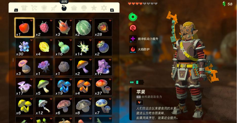 不过说到最好玩的地方,应该还是《王国之泪》中海量的收集材料了,除了能吃的和用于强化的材料外,本作还新增了余料建造能力,这个功能在保留武器原来特性和特殊效果的同时,每种材料都会给武器附加一定的攻击力和不同的特性。