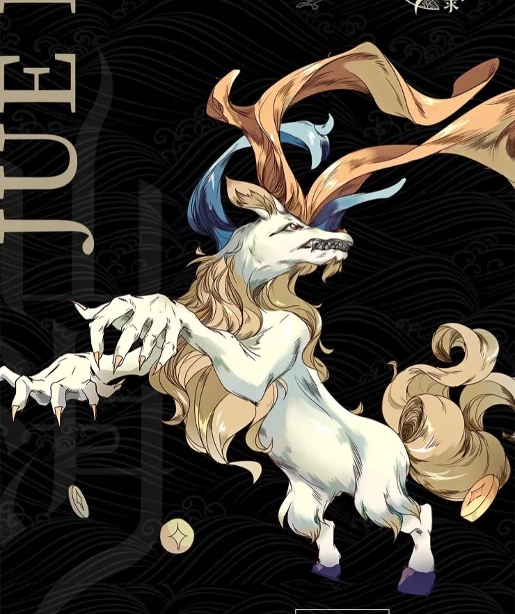 长着牛尾马蹄鬣毛的猿猴,双臂长满花纹,见人喜欢大叫,叫声就是足訾~。