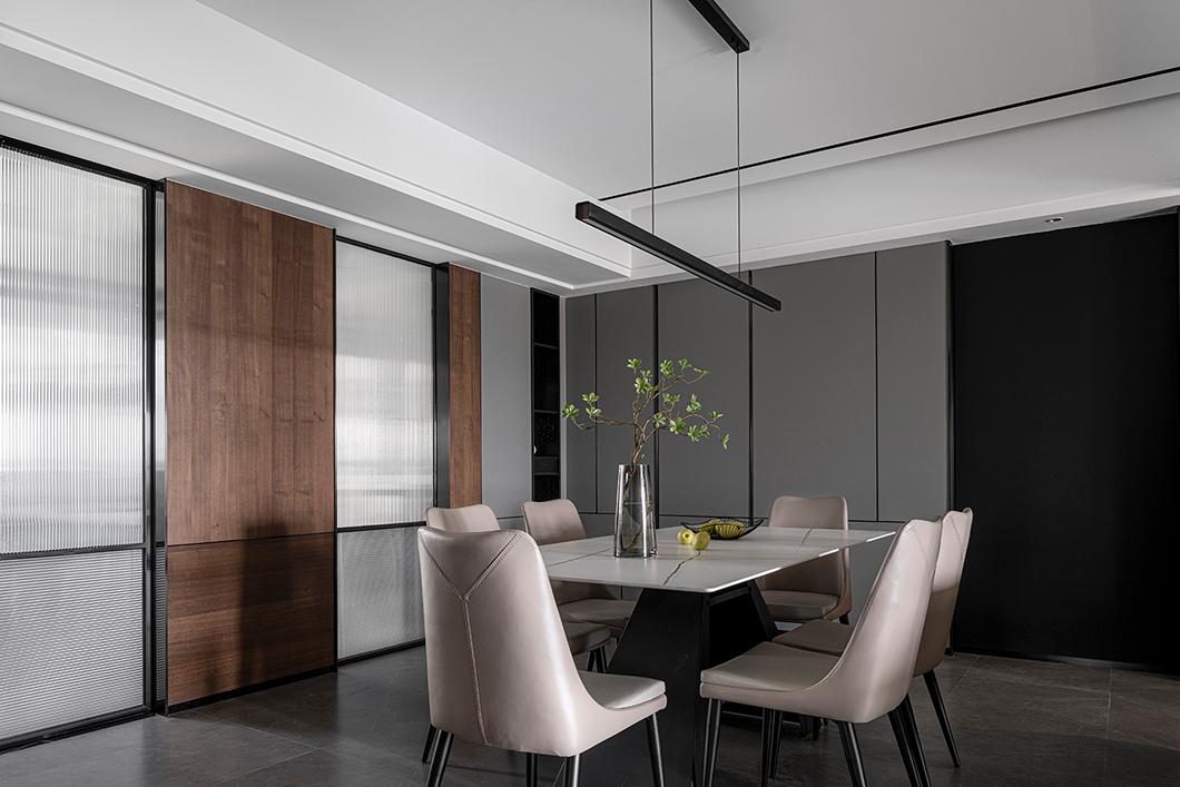▲餐厅的风格与客厅统一,所以无论是材质还是色彩的搭配都是一致的。