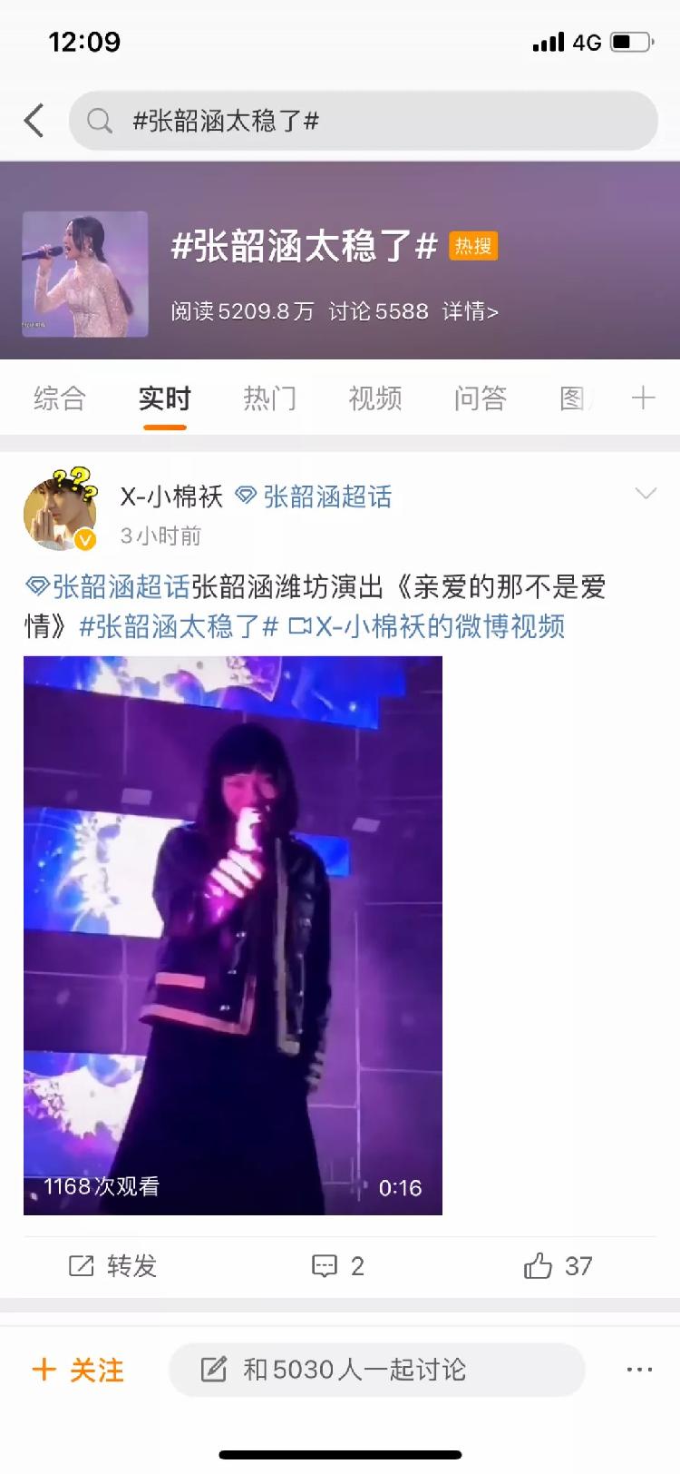 对于现场清唱韶涵亦发微称过瘾:“姐累了,图返,在路上,清唱也很过瘾,明天见!”微博发出后收到19942个点赞。小编注意到,#张韶涵潍坊清唱#、#张韶涵太稳了#等话题登陆微博热搜。