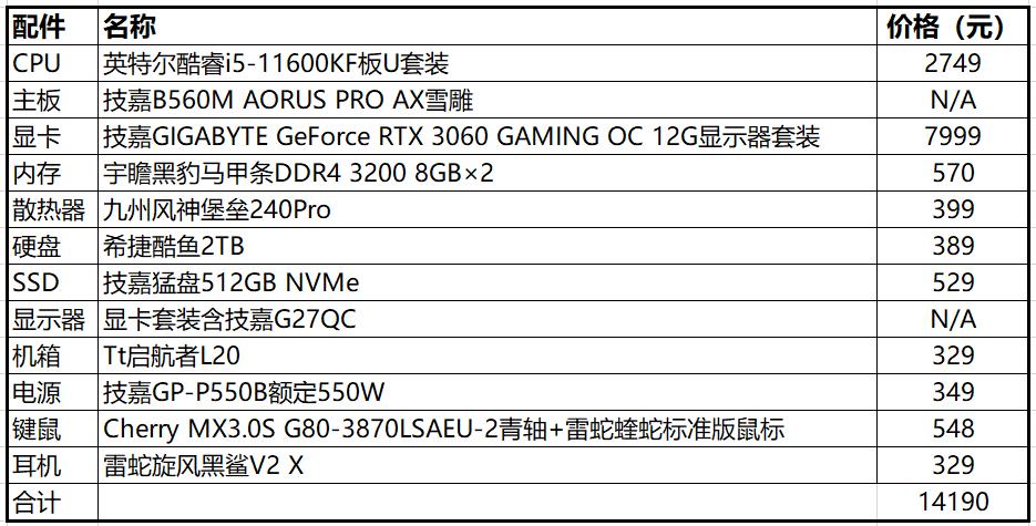 需要注意的是,酷睿i5-11600KF没有附带散热器,需要单独购买,所以我们在配置中选用了一款高性价比且支持光效同步的一体式水冷散热器。此外,考虑到游戏玩家没有使用核芯显卡的需求,所以酷睿i5-11600KF更实用一些。