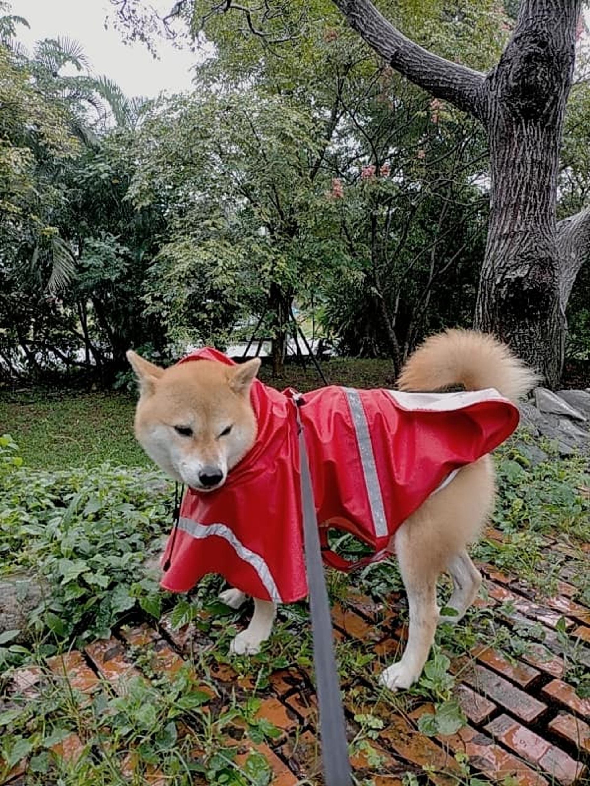 一主人这天带柴犬Lulu出门散步时,见到细雨绵绵就给它穿上雨衣再套上胸背带!这是Lulu第二次穿这款胸背带,没想到意外发生了!