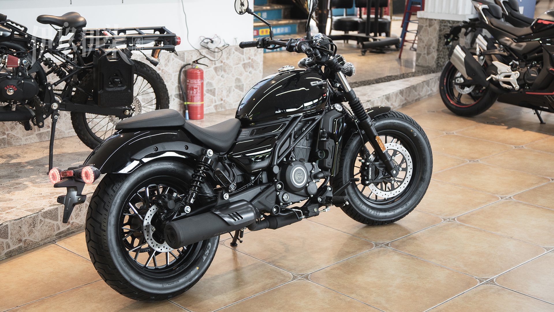 而轮毂部分也是使用450CLC同款的仿辐条式的铝合金轮毂,而轮胎也是同尺寸,前轮130/90-16,后轮150/80-16寸,所以整个250CLC在气势上也不会有排量很小的感觉。